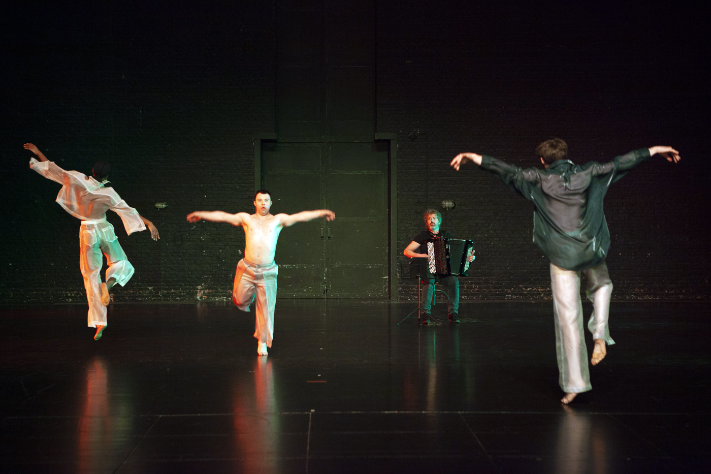 Choreography: Michiel Vandevelde Dance: Oskar Stalpaert, Audrey Merilus and Michiel Vandevelde Live music: Philippe Thuriot Costumes: Tutia Schaad Assistant costumes: Camil Krings Dramaturgy: Kristof van Baarle Scenography: Michiel Vandevelde, with the support of Tom Callemin Technique: Maxim Van Meerhaeghe, Ferre Carron and Maarten Snoeck Advice light: Tom Bruwier Production: Platform-K International distribution: Something Great Co-production: Kunstencentrum Vooruit, Kaap Thanks to: Kaaitheater and CAMPO With the support of: Vlaamse Overheid, Nationale Loterij, Stad Gent, Konekt, de Koning Boudewijnstichting Duration: approx. 65 minutes